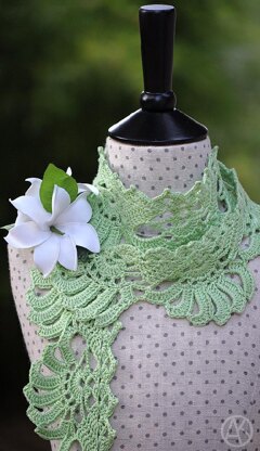 A quick perfect accessory for the upcoming holiday season and more. This scarf was inspired by beautiful tropical Gardenia during our vacation, best known for their fragrant white flowers. Referred to in Hawaiian as "kiele", they used frequently in Hawaiian leis.