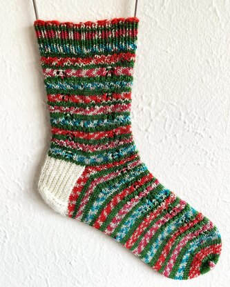 A bit of texture represents Garland and a bit of lace represents Gifts. It’s a fun-to-knit repeat that I think any sock fan will enjoy.