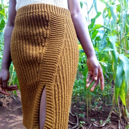 Garrett Skirt is a knit-look crochet straight skirt with a striking slanting centre front detail that resembles the knit garter stitch. I know it looks knit but this is entirely CROCHET. This skirt contours to your body and is very flattering.