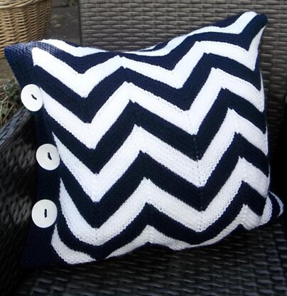 A very easy knitting pattern for a Chevron Cushion/Pillow, knit in strips of garter stitch (knit every row).