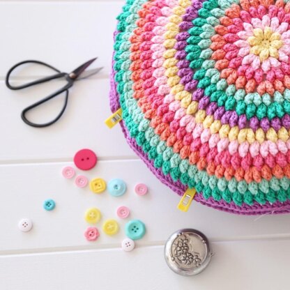 Get hooked on popcorns with this fun, fab and colourful crochet cushion pattern. This is a 17 page downloadable PDF for the crochet cushion you see pictured here. The pattern contains both UK and US written instructions, images, charts for the front and back plus shorthand instructions for both US and UK users.
