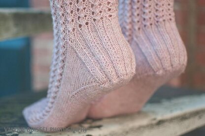 They are constructed from the top down, with a textured hard-wearing heel-flap and an unusual gusset decrease section that you will go back to time and time again, for they shape those heels SO neatly!