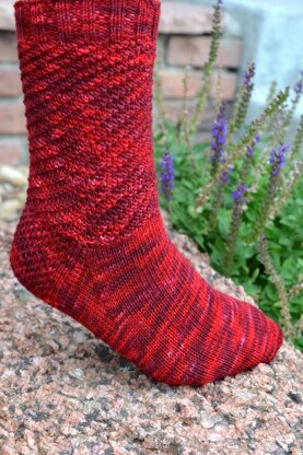 • These are made cuff down. • Pattern includes written instructions and pattern chart for Diagonal pattern and heel stitches. • Instructions are given for smallest size, with larger sizes in parentheses. When only 1 number is given, it applies to all sizes. • Diagonal pattern is stretchy! • Pattern could easily be made using two circulars by an accomplished knitter. • I designed these socks to show off the beauty of the yarn. Using an easy knit/purl pattern keeps the mind engaged while the knitting flows from the double pointed needles.