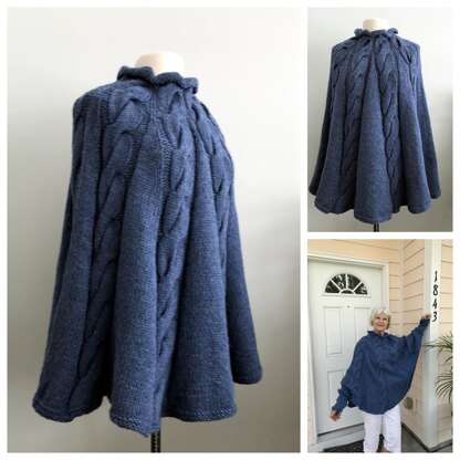 The Genevieve Poncho is beautiful in its simplicity boasting classic lines and scrumptious big cables.  The minimalistic design has a lovely drape and feminine appeal. Using bulky weight yarn and large needles, it knits up more quickly than imagined.  The pattern has just enough changing stitches to keep your interest but also is easy for the new knitter.