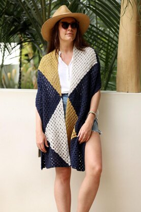 A simple color change takes basic granny squares to a bold new level with the Geometry Wrap. Worn draped over the shoulders, tossed across the body, or wrapped like a scarf, it’s a versatile accessory with a breathable fabric to transition from season to season.