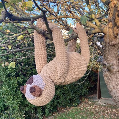 George the giant sloth is an adorable make using soft bernat blanket yarn to create a large (1.1 m long) sloth, perfect for those who love these slow-moving creatures.