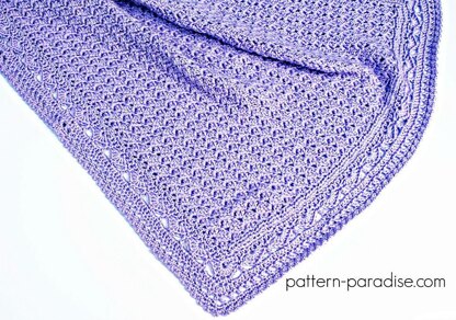 This pretty blanket is full of subtle texture and an interesting edging. Perfect to welcome the new little one!