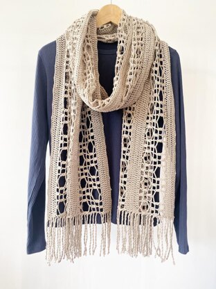 It can be made in two ways, as a typical scarf or wider and longer to work as a shoulder wrap to drape around you on cooler summer nights.