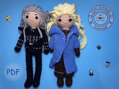 With yarn length 150m/50g these dolls are about 30 cm high.
