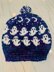 This hat matches the Get Ghosted Dog Sweater. Hat is knit in the round from bottom up, using two contrasting yarn colors. Fair Isle stranded knitting technique is used.
