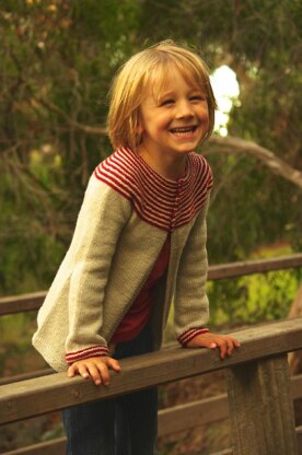 GIDDAY: Australian colloquialism for hello. A warm greeting of affection. Gidday is the comprehensive version of the Gidday Baby cardigan and is superbly simple. A striped garter stitch circular yoke is accentuated with cute buttons and a stocking stitch body.