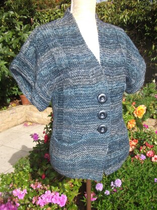 A really useful, pocketed, longer line gilet-jacket using garter stitch and stocking stitch. There are no front borders to sew on as they are incorporated into the fronts. Super if you don’t like sewing up! This design is good for multi-use, capsule wardrobes for all seasons.