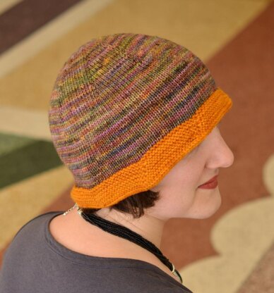 Knitted from the top of the crown down, Ginger is a 1920s-inspired cloche with an asymmetrical brim, knitted with worsted weight yarn at a tighter-than-recommended gauge for a firm fabric that will keep its shape without the extra step of felting. Choose a contrast brim color for an extra pop of color!