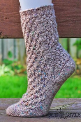 Ginger Snap Socks are worked toe-up and feature a simple yet impressive dip stitch pattern on the top of the foot and front and back of the leg. This sock features a modified flap and gusset heel construction.
