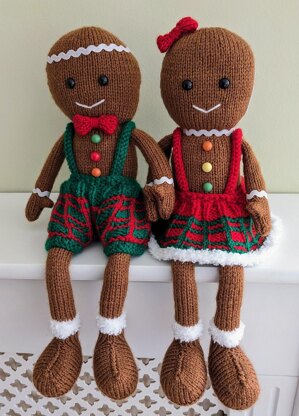 Gini and Gerry are both the same pattern apart from the skirt and the trousers. I added weighted material to the body base for stability but this could be replaced with toy stuffing. You will need 100g of gingerbread shade yarn to create both characters. I used 10mm eyes and buttons. Plus ric rac ribbon.