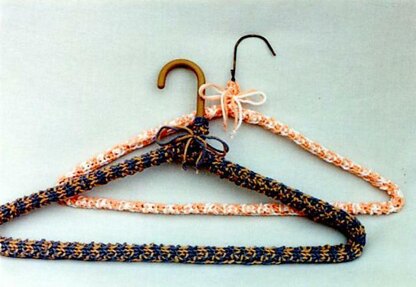 These are truly a great door prize for baby showers, and wedding showers! Or give one to everyone at your next card party! The easy knit design looks like gingham as you work. Directions have how to fit around ready made hangers. Fits both plastic and wire hangers. Uses small amounts of worsted weight yarns, knitting needles US # 8.
