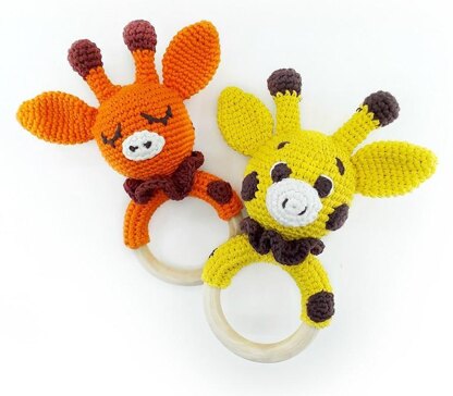 Yarn 100% Cotton yarn (1.75oz/50g approx 137yds/125m) yellow 50yards, brown 25 yards, a little white 4 yards for the muzzle. Crochet from a thread of 1 additions. When using the recommended yarn, the size of the finished teether is 16 cm / 6 inches (together with the ring) Hook-No. 1,0-2,0 mm Scissors Needle 1 wooden ring with 70mm 2 wooden beads 12 mm Filler -holofayber, synthetic fluff