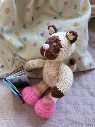 The pattern is written for knitting flat on two needles and all pieces are seamed afterwards. Please note that this project is not a quick or simple knit. It takes me around 14 hours to make and finish each of the animals that I make and just under half of that time is spent on the finishing off. There are lots of separate pieces which require seaming and sewing and if you are looking for something fast and easy you would probably be better off finding a different pattern. That said this PDF file will give you all of the information that you need to knit the little cat pictured