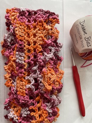 Crochet lengthwise with a different edge on each side. A great project to use a single skein of yarn, or stash bust - try it in multiple colors, a delicate lacy yarn, or even chunky for a dramatic look.