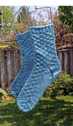 Gitter is the German word for ‘grid’ or ‘lattice’. This reverse stockinette stitch lattice design on a stockinette background is a simple 10 row, 10 stitch repeat that makes for a quick, fun knit. Gitter is knit from the top down with an Eye of Partridge heel and Kitchener stitched toe. The lattice design wraps around the leg of the sock and continues along the top of the foot, ending at the toe.