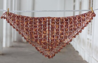 A perfect shawl for autumn, Give into Fall is a simple top down triangular shawl made with fingering weight yarn. Wool based yarn are preferred, to give that lovely stretch that opens up the lace work