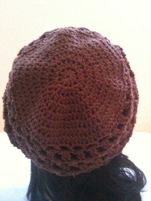 The slouchy hat has become one of the most popular style of hats. It can be plain, or, as in this case, quite trendy and a little bit more fun.