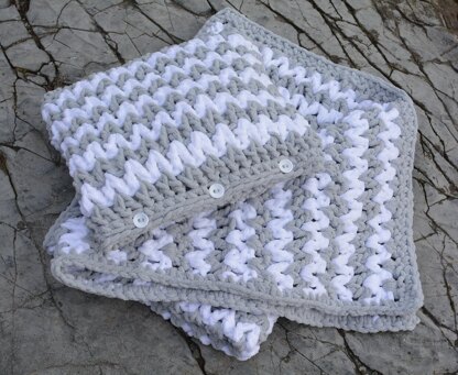Have you ever seen the mesmerizing path of bright full moon on playful waters? This inspiration lies behind the bold and edgy lines of Zyggy stitch, worked in luxuriously soft and snuggly blankie yarn.
