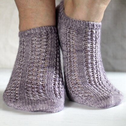 The Scots word for dusk or twilight, Gloaming is a fun shortie sock pattern with a lace pattern covering the foot. Knit from the toe up with a gusset and heel flap and flexible length fitting on the foot, these socks are a great knit for everyone! The pattern is written for short socks but guidance is included in the pattern to lengthen them into ankle socks.