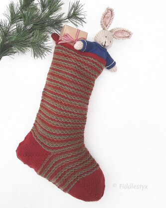 Inspired by the traditional colors of the holidays, this stocking features textured stripes in red, green, and gold.