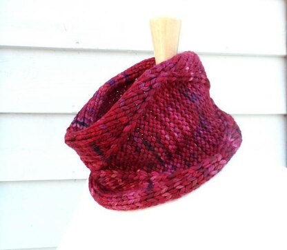 One skein of chunky yarn makes a quick and easy, cozy cowl that will also warm you up on a cold winter day. Stockinette and reverse stockinette are separated by wandering twisted stitches. This pattern works well with variegated colorways. Glühwein is knit lengthwise and then joined to make use of stockinette stitch’s tendency to roll inward at the sides.