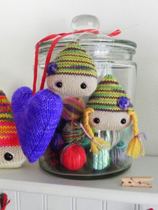 Pattern includes directions for all versions of the gnome and the heart~ Knit in any weight yarn these make wonderful little keepsake ornaments as well as being terrific toppers for gifts or handmade goodies from the kitchen like jams, breads & cookie plates! They will look fantastic on the holiday tree or string them all together for some gnometastic garland. Each piece requires so little yardage that it's a great way to play with your favorite indie dyed yarn and they are perfect for those mini-skeins you've got piled up in your stash!