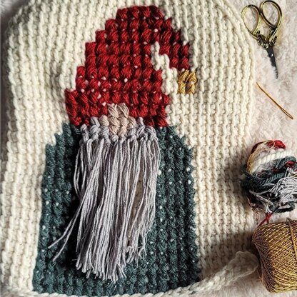 This pattern is for a gnome tunisian crochet + cross stitch wall hanging. It’s the perfect mindless project to practice Tunisian crochet and learn a new crochet and cross stitching technique!