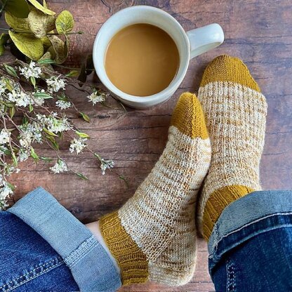This sock pattern is perfect for your 30 minutes of knitting every morning. It works up fast.