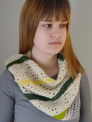 The Winter Mystery Cowl 2020 uses worsted weight in five colors! For best results, the MC should be a solid or semi-solid, but the 4 contrast colors can be anything, variegated, self-striping, speckles, etc.