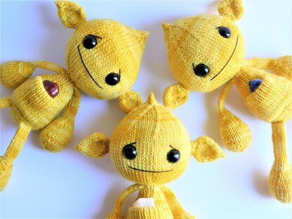 Pattern is worked completely in the round. The limbs and pocket are attached as you go and there is minimal seaming to attach the ears and secure the pocket sides. A fun, quick and easy project for knitters of any skill level. All the shaping is made with simple increase & decrease stitches. Skills required to knit this toy: -Knit & Purl in the round -Increase and decrease stitches -Follow instructions for a three-needle decrease (provided in pattern) Sizes: The Worsted sample is approximately 10.5” from foot to head