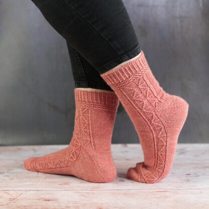Golden Foil stems from goldfoil, which Gerard Manley Hopkins used to poetically describe lightning. Golden Foil is a toe-up sock with an easy heel construction and a simple and enjoyable stitch pattern that is reminiscent of lightning.