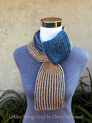 Golden Strings Scarf ( Keyhole / Ascot / Pull-Through / Vintage / Stay On / Brioche Scarf Knitting Pattern )