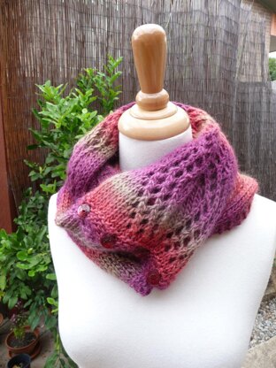 The design of the Gothic Rose cowl has Paris wound through it in many ways. The magnificence of the arching, vaulted ceilings of the gothic Notre Dame de Paris is the inspiration for the geometric lace that flares and tapers along the length of the worsted weight cowl.