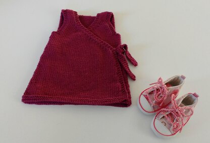 A cute, modern, simple wrapover pinafore for a baby or toddler. Easy to dress a little one in due to the wrap over style. Pop over stripy tights and a top or over denims. The dress can become a tunic as the baby grows so there is plenty of wear in it. Make in merino wool for the winter or cool cotton for the summer when it could be worn on it's own.