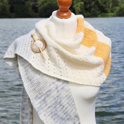 The Graceful Gull is a crocheted shawlette featuring light and airy stitches that give it beautiful drape and flow.