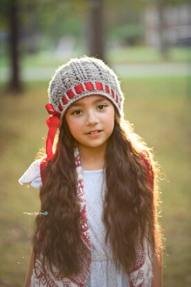This is a PDF crochet pattern for a textured beanie in 6 sizes. The pattern includes two different options for edging (simple or ribbon option).