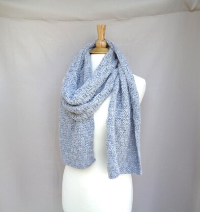 A cozy unisex scarf with an elongated basketweave design that’s super easy – every other row is knit!