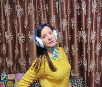 This pattern includes instructions on how to make a Granny circle motif, inner earpieces,