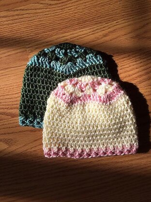 This little hat works up quickly starting with a granny square, and is perfect for using up worsted weight scraps. Consider combining it with a coordinating afghan for a darling gift set! Pattern is only available in one size, but using a heavier yarn and/or larger hook size should result in a larger hat if desired.