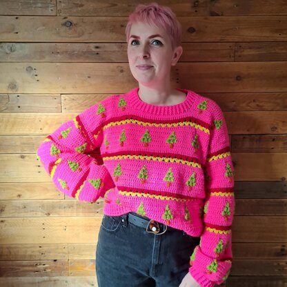 Show your holiday cheer this winter with the Granny Spruce Sweater. Cute bobbles and retro granny stripes combine to make a super snazzy and fantastically festive sweater, perfect for any seasonal gathering. Whether getting in the spirit with a trip to a Christmas market, or cosying up with a blanket and The Muppets, you’ll feel merry and bright in your new one-of-a-kind jumper. The pattern is graded for sizes XS-5XL with 4 length options for every size. You can also choose between two sleeve options and two back panel options. This pattern uses DK yarn and a 4mm hook. Size / finished circumference / approx. MC meterage (shortest-longest length). XS / 94 cm / 865-1260 m S / 106 cm / 965-1405 m M / 115 cm / 1010-1495 m L / 123 cm / 1110-1640 m XL / 133 cm / 1155-1725 m 2X / 145 cm / 1255-1870 m 3X / 153 cm / 1300-1955 m 4X / 165 cm / 1400-2100 m 5X / 177 cm / 1450-2190 m