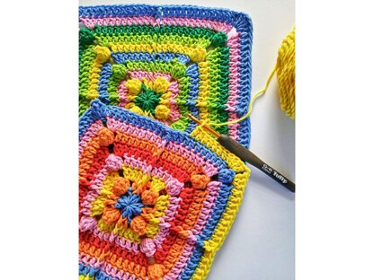 I used 10 gorgeous colors of Hobbii Rainbow Cotton 8/8 (listed in the pattern), but you can use any DK yarn such as Paintbox Cotton DK. Choose your own colors and make it uniquely yours.