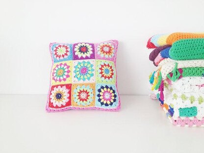 The pattern explains you how to make the front and the back of the pillow, and how to attach both sides. The size of the pillow depends on the yarn you use. This pattern is made with crochet hook size 2.5mm and a pillow of 40x40 centimeters. All my patterns are in US crochet terms.