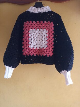 Skill level: Intermediate MATERIALS 7 balls of Robin Chunky yarn weight 4 100% acrylic 320-325 yards Yarn A: White yarn 1 ball Yarn B: Light pink yarn 2 balls Yarn C: Black yarn 4 balls Size 5.0 mm crochet hook Tapestry needle/Yarn needle Tape measure A pair of scissors TENSION It is worked flat Finished motif square: measures 18” by 18” SIZE INFORMATION This project displayed is for size medium This pattern is written and charted using standard US crochet terminology.