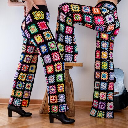 To make these granny square crochet long pants you need to have a basic knowledge of how to crochet and how to join granny square motifs. You can use any method you prefer for joining.