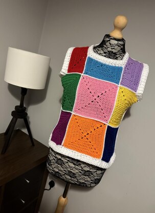 With crochet clothes coming back into fashion, this granny square vest crochet pattern is a must have. Super easy to make it consists mostly of Granny squares and SC.